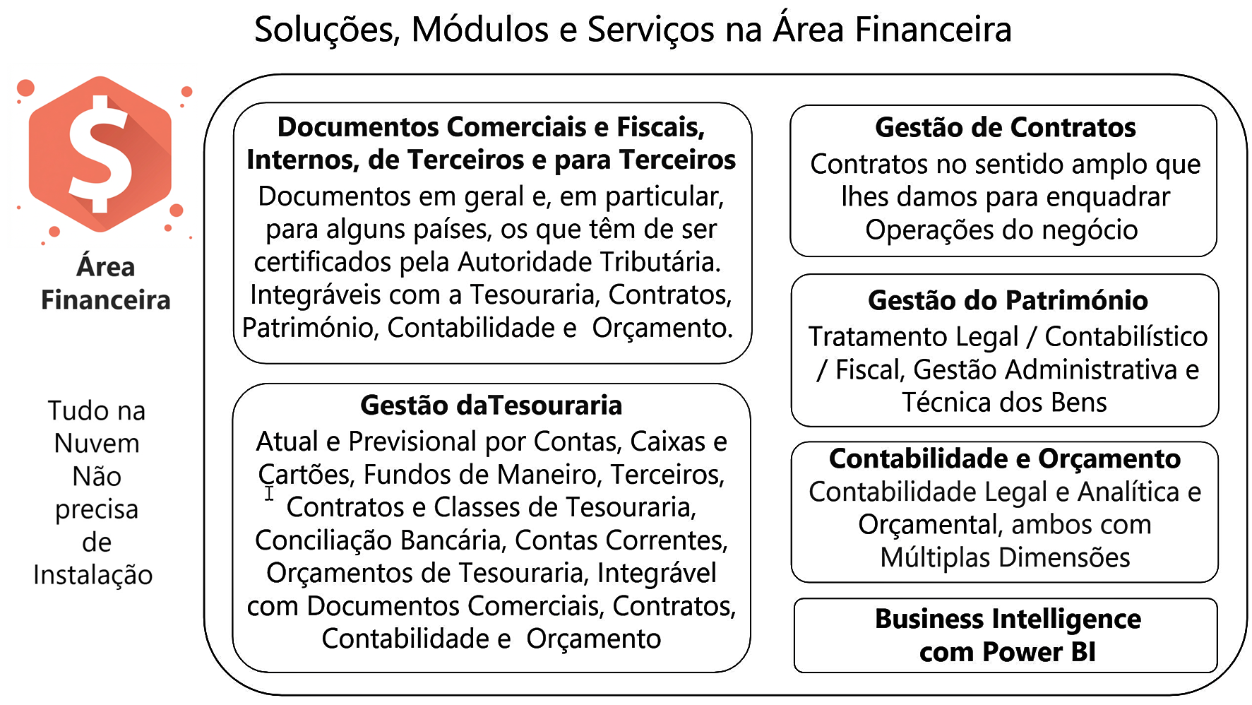 Note-se que deve ser tido em conta que para grandes organizações e para muitos Módulos, em determinados países e se se justificar, podemos instalar em servidores dos Clientes o que temos na Nuvem. Temos Clientes deste tipo, mas a viabilidade desta solução tem de ser estudada caso a caso e é bem mais onerosa.