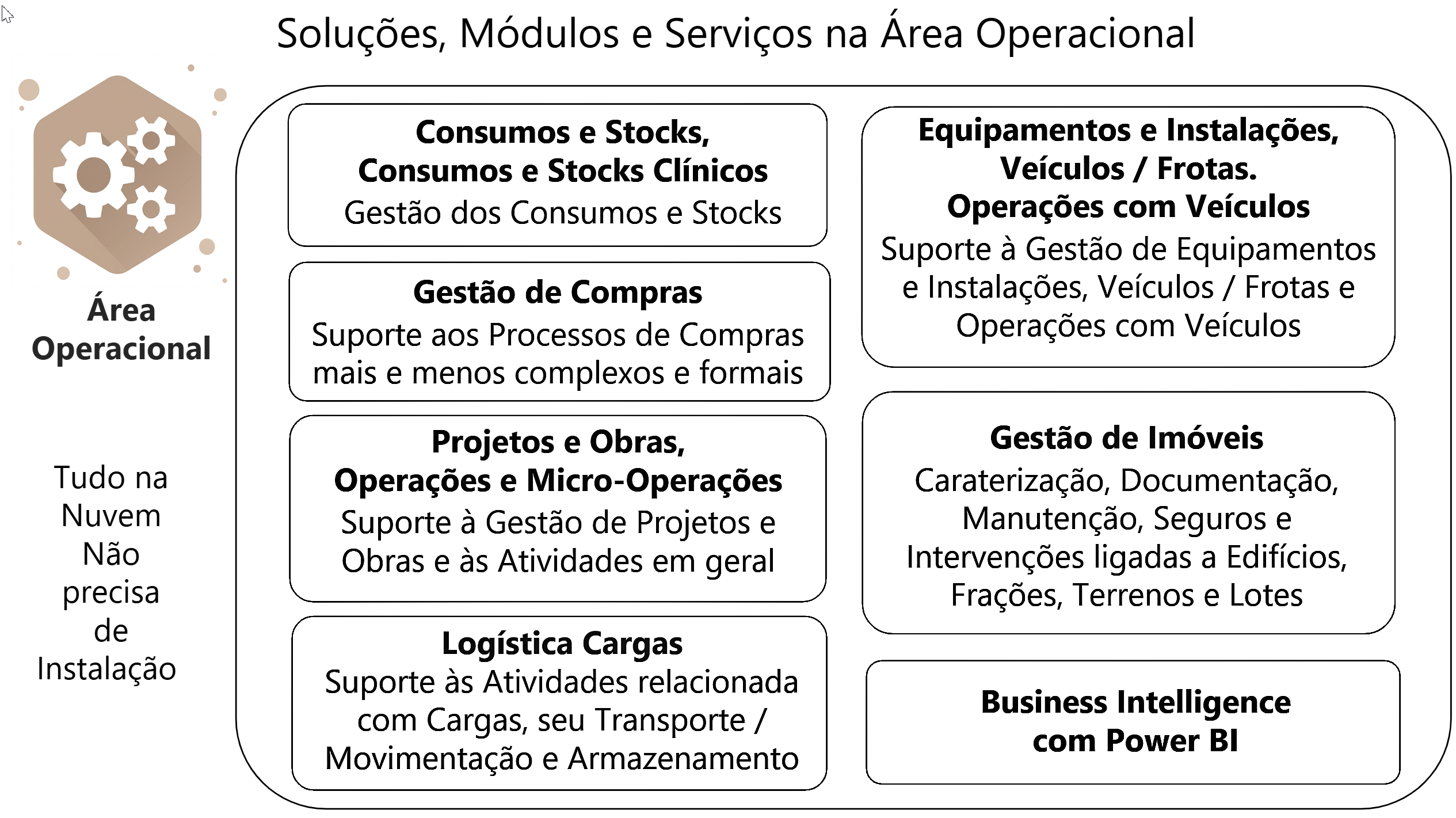 Os servidores na Nuvem onde funcionam os Módulos subscritos são nossos, sendo, portanto, nossa a sua aquisição, manutenção e gestão e todos os custos inerentes. Custos que são bastante significativos e exigem técnicos / consultores especializados.