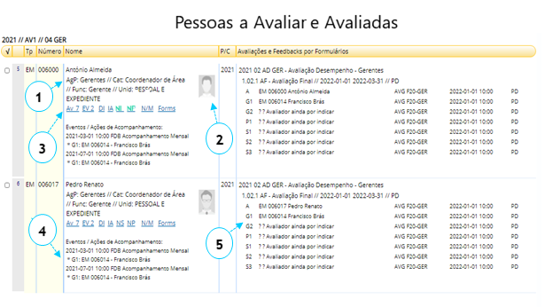 Por exemplo, ligados à Web, na Nuvem, a partir da listagem de Pessoas a Avaliar e Avaliadas abaixo exemplificada pode-se: